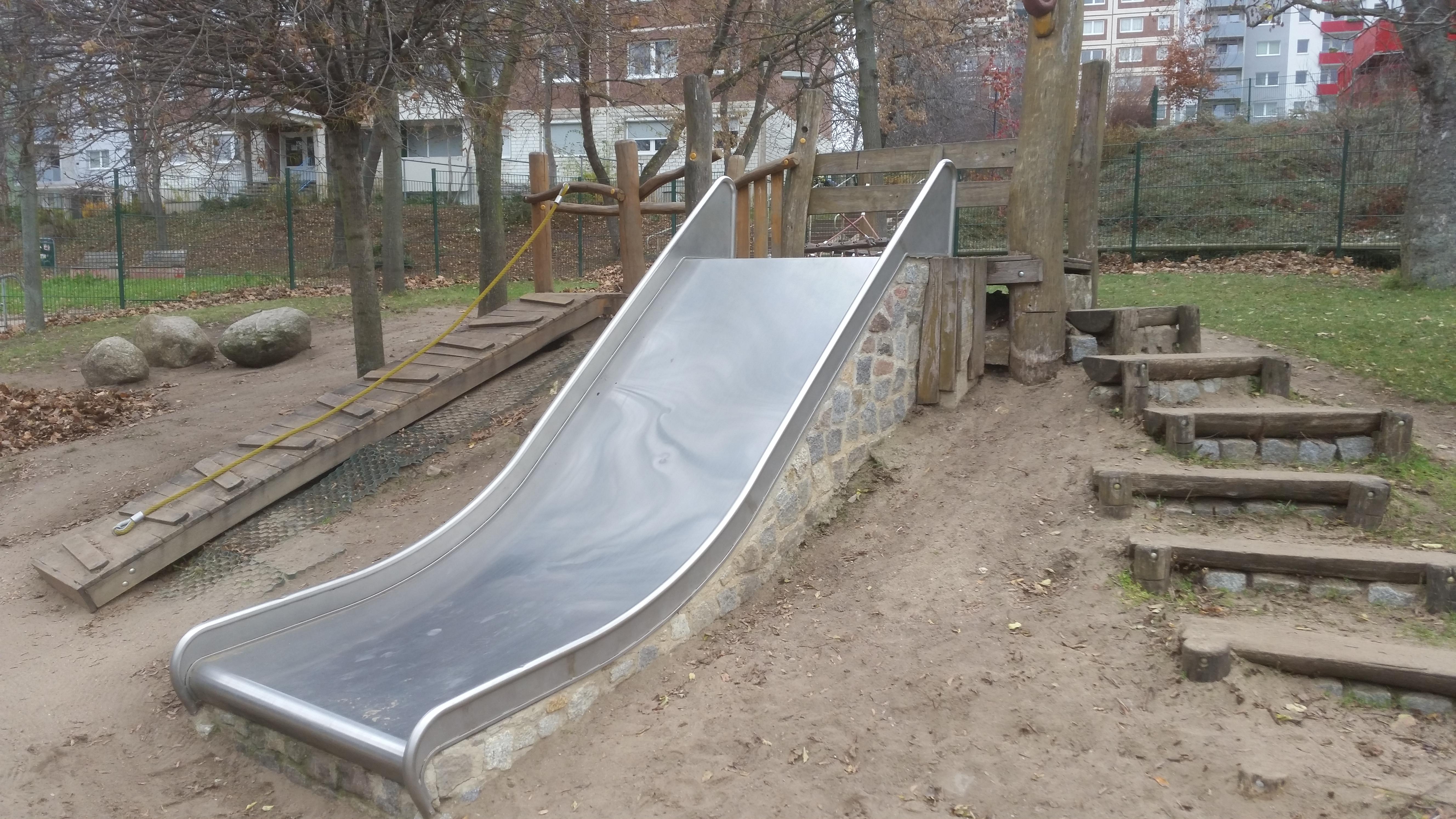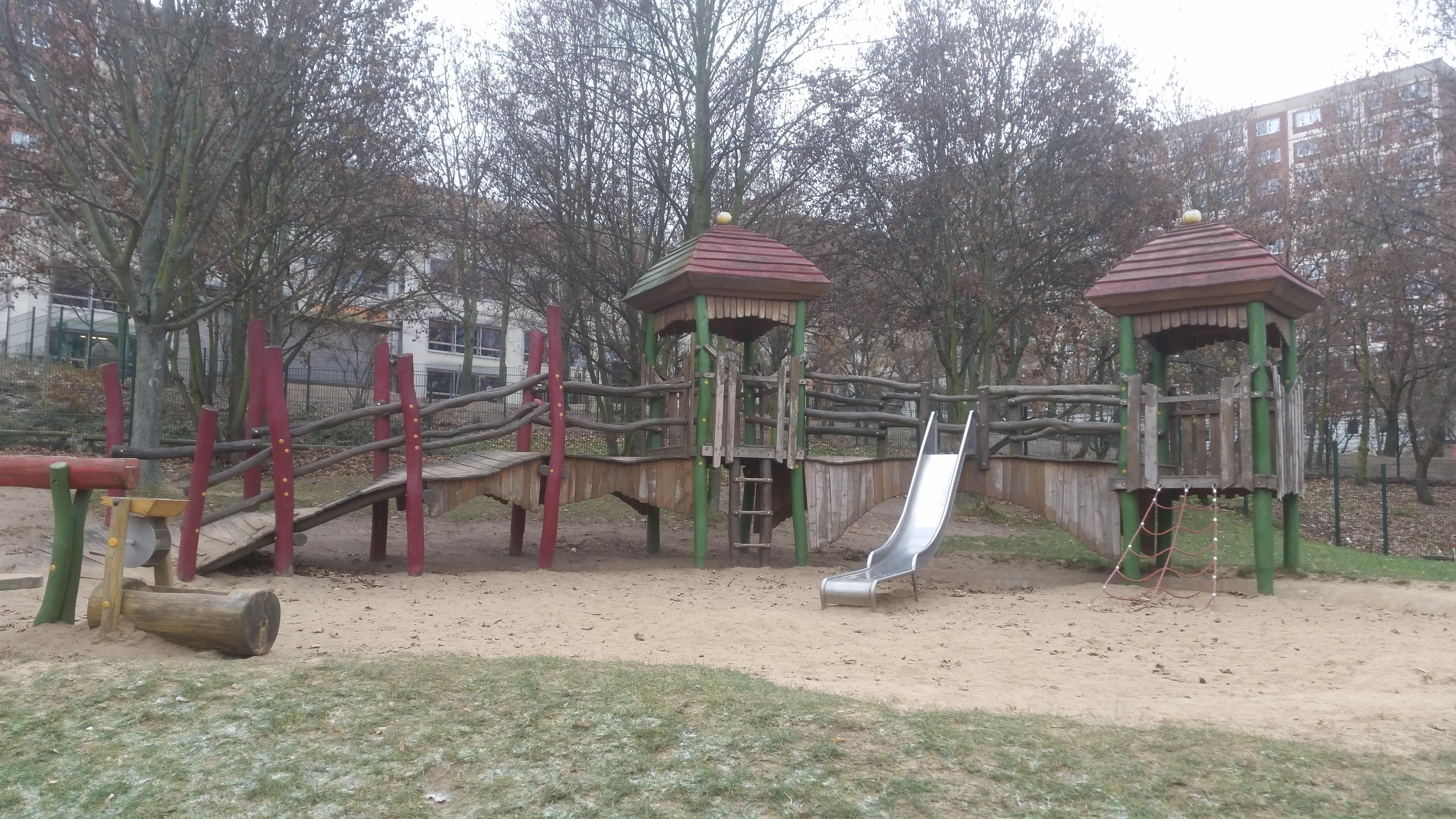 Spielanlage „Palast des Maharadscha“, „Vor den Tores des Palastes“ (u. a. mit Wasserspielanlage, Klettergerät. Reckstangen, Balancierstämme usw.)