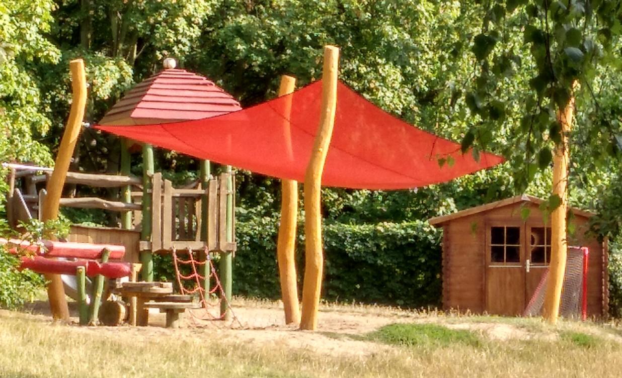 Wir verpassen allen Spielgeräten im Garten einen wetterfesten Anstrich.